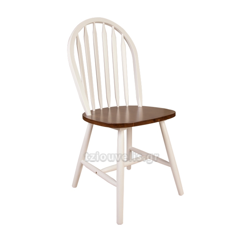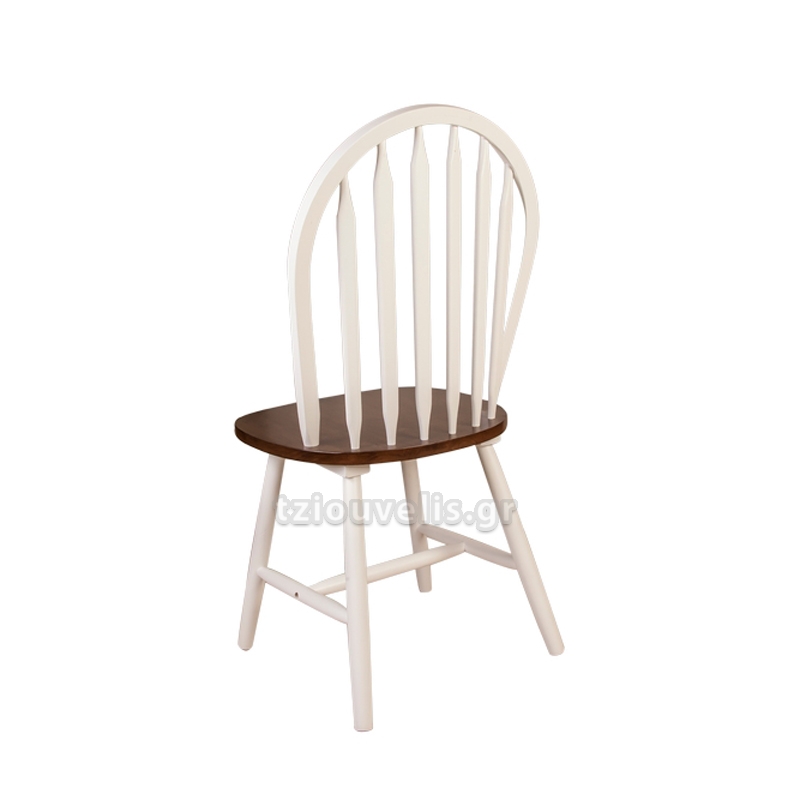 Ξύλινη καρέκλα. Λευκός σκελετός με καρυδί κάθισμα.