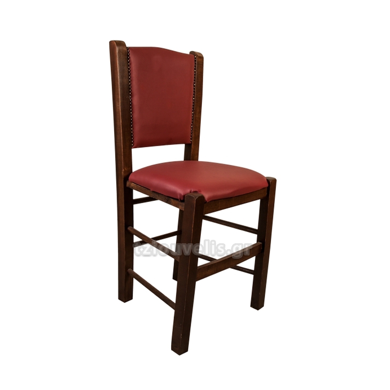 Ξύλινος σκελετός με πλάτη και κάθισμα από ύφασμα ή δερματίνη.