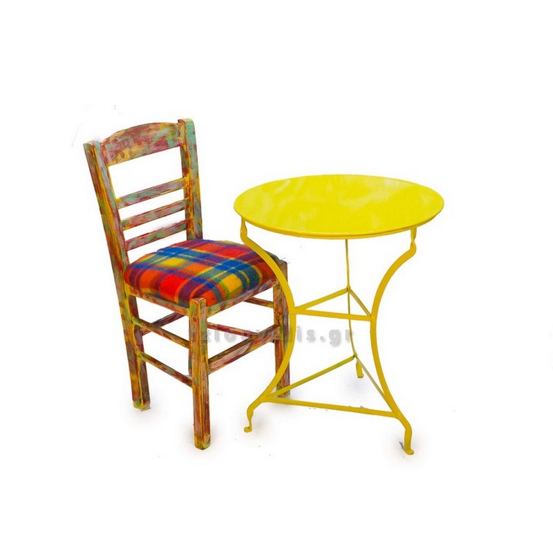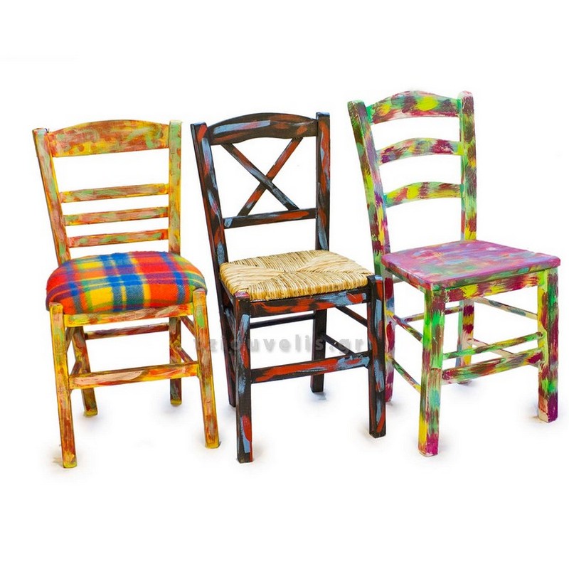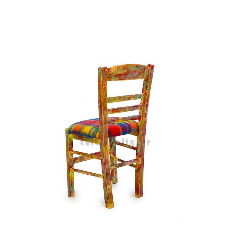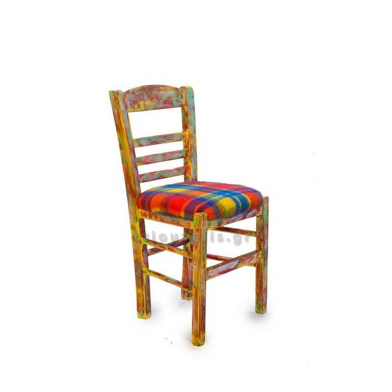 Ξύλινη καρέκλα. Εναλλακτικά κάθισμα από: Ψάθα, δερματίνη, ύφασμα και ξύλο. Πολύχρωμο σχέδιο.