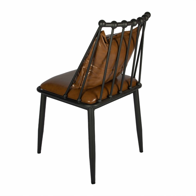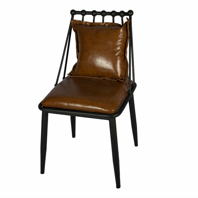 Καρέκλα μεταλλική σε μαύρο χρώμα - πλάτη/κάθισμα από καφέ δερματίνη. Διαστάσεις: 42x49x79