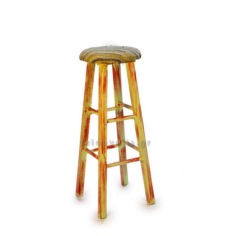 Ξύλινο σκαμπό χωρίς πλάτη. Εναλλακτικά κάθισμα από: Υφασμα ή δερματίνη. Πολύχρωμα σχέδια.