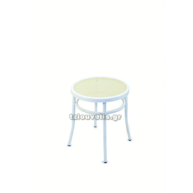 Απλό σκαμπό. Μεταλλικός Σκελετός. Κάθισμα από τρυπιτή ψάθα ή δερματίνη