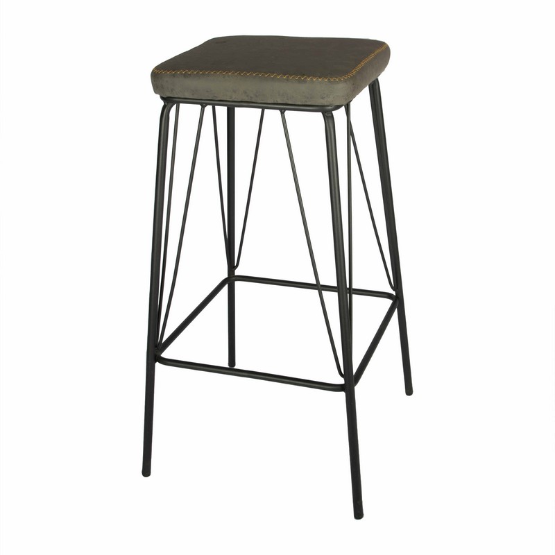 Σκαμπό μεταλλικό - με κάθισμα δερματίνη, σε μαύρο, καφέ και γκρι. Διαστάσεις: 43x43x76