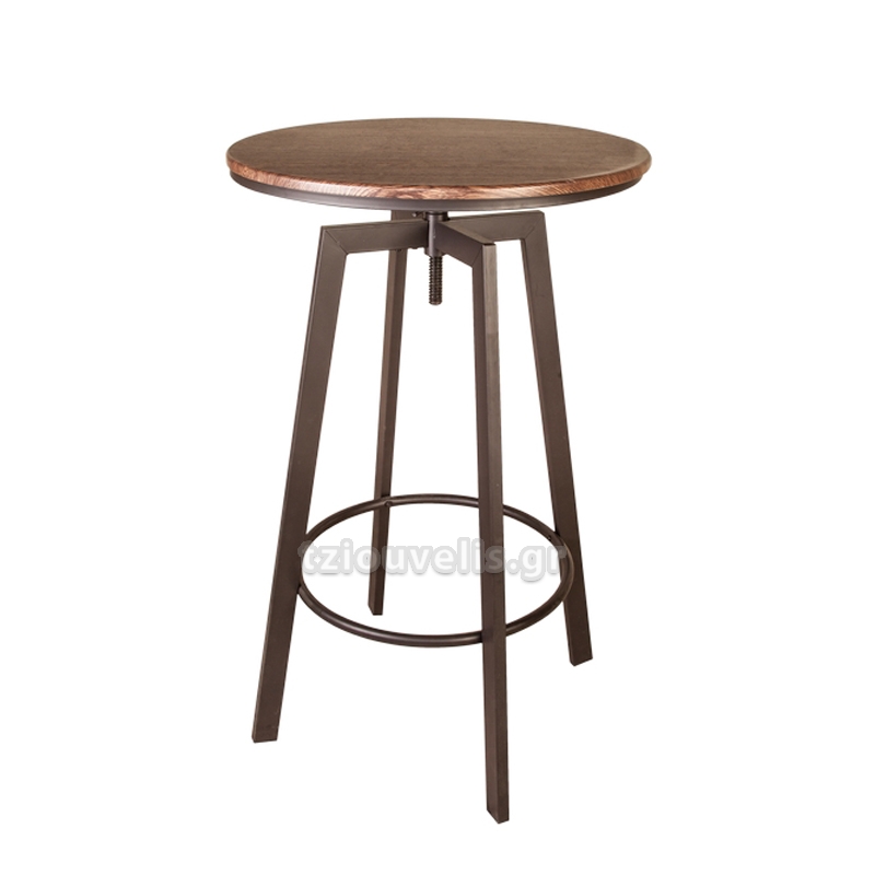 Ψηλό τραπέζι για μπαρ. Βάση μεταλλική. Καπάκι βιδωτό από καπλαμά οξιάς