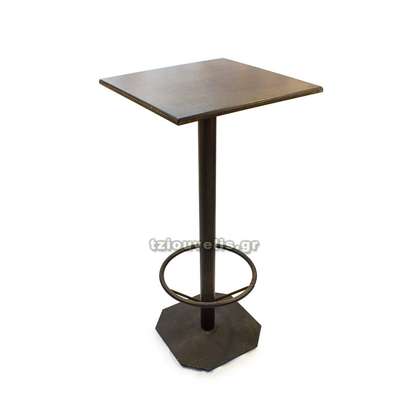Ψηλό τραπέζι για μπαρ. Βάση μεταλλική. Καπάκι από ξύλο ή Βερσαλίτη. Σε διάφορα χρώματα